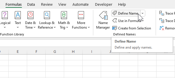 Wchodzimy do menadżera nazw (define name) i tworzymy takie jak na obrazku, podając parametry i kalkulację (może być tylko jeden parametr).
