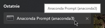 Jeżeli zainstalowaliśmy dystrybucję Anacondy (co polecam), to mamy coś takiego jak Anaconda Prompt – taki jakby terminal.